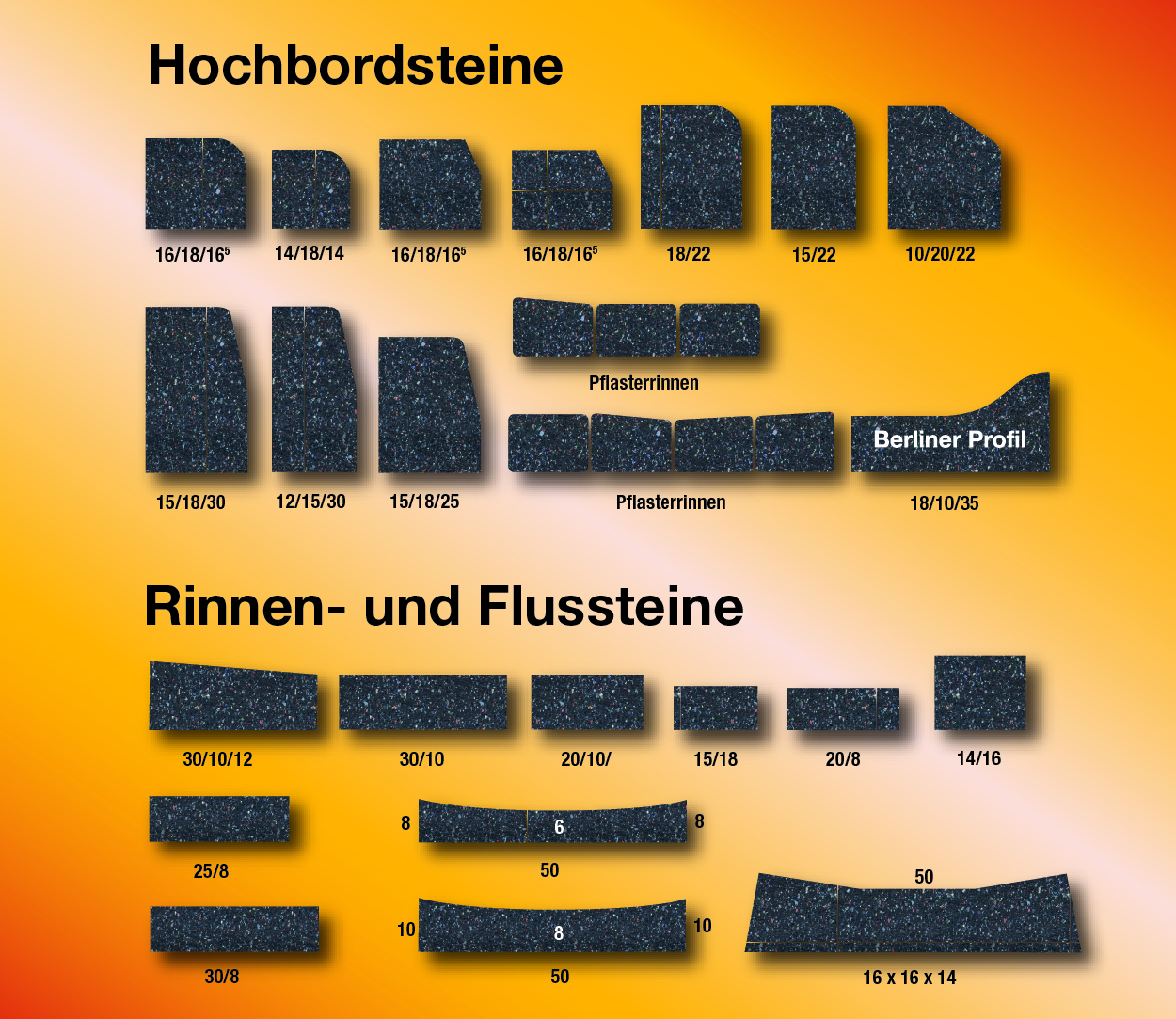- Einbau alle 5 m je nach Form der Bord- oder Rinnensteine - Sie sind frost- tau- und salzbeständig sowie hitzebeständig bis 250°